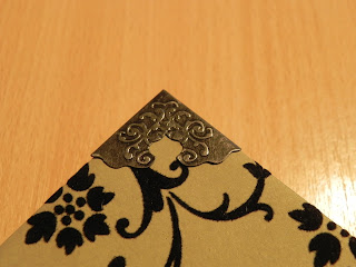 Next I added Tim Holts antiqued metal book corners to the front cover. Once the covers were done I set them aside to work on the signatures.